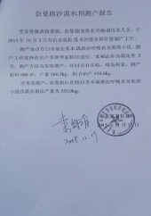 奈曼旗农牧业局所出具了测产报告。通过测产,示范区产量折合亩产1100斤/亩,对照区产量折合亩产800斤/亩,增产达到40—50%,同时减少了60%化肥使用量,没有使用化学农药;与该地块2014年产量(500-600斤/亩)相比,增产达到100%。示范区所产的水稻为品质优良的稻花香有机米,该农户以3.6元/斤(同类大米加工后市场价高达80元/斤)的价格出售,高于当地普通水稻稻谷价格(1.5元/斤),每亩收入折合3611元,扣除当年使用的肥料费用1500元/亩,纯收入为2111元/亩。与往年纯收入300元/亩比较,收入增加1811元/亩,增收幅度高达6倍。第二年土壤改良菌剂投入比第一年用量减少50%,农民纯收入进一步增加。与会领导、专家一致肯定示范区取得的成果,建议大力推广禾神元-微生物土壤修复改良技术。